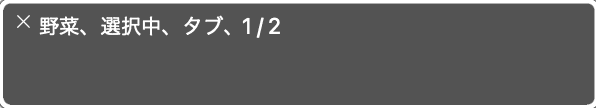 この読み上げからはタブUIどころか、「野菜」という名前の「ボタン」という役割を持つ要素、ということしか伝わりません。