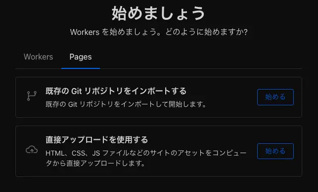 Cloudflareアカウントを作成・ログインした後、サイドバーからコンピューティング (Workers) -> Workers & Pagesを選択します。その後Pagesタブを選択します。