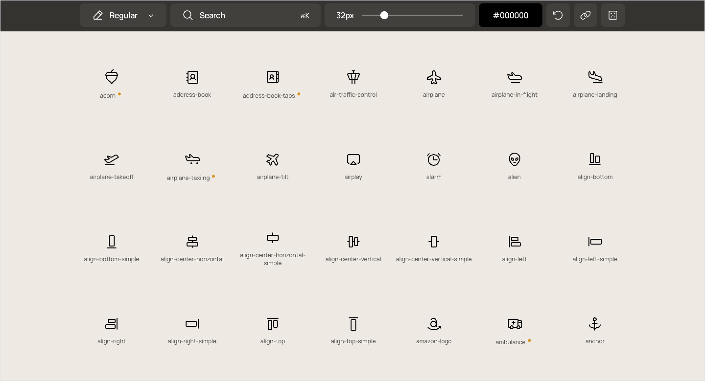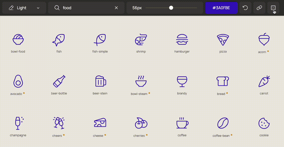 アイコンライブラリ別で探すこともできますし、キーワード検索でアイコンライブラリを横断することも可能なので、探しているアイコンがきっと見つかるはずです!