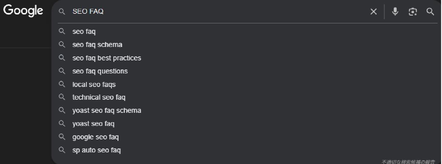 Googleの検索窓にキーワードを入力した際に表示される「サジェストキーワード」や、検索結果の途中に表示される「他の人はこちらも質問(People Also Ask)」は、ユーザーの潜在的な疑問の宝庫です。