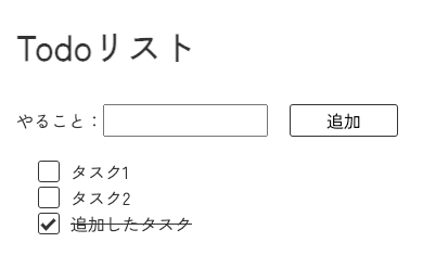 テキストフィールドに入力して追加ボタンを押すと、新しいタスクが追加されます。