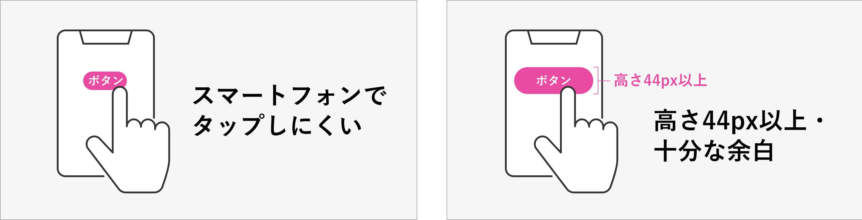→改善:高さ44px以上・周囲に十分な余白を確保する