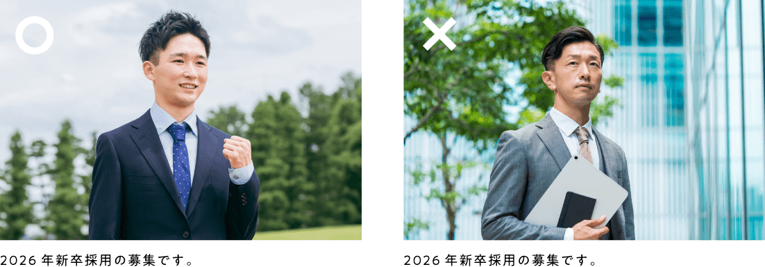 例えば、新卒採用の説明をしているのに40代のサラリーマンの男性の写真を添えるのは、当然ながらナンセンスです。