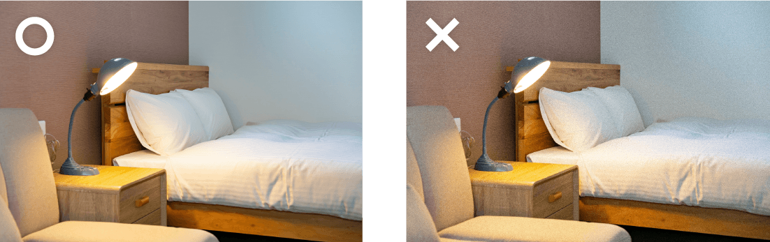 ロケーションが室内という場合もありますよね。その際に気を付けたいのが、暗い室内だとカメラの性質上、光を十分に取り込むことができずノイズが発生することです。ノイズがある写真は、荒れて見えるため印象が良くないため、ノイズがないことが重要です。