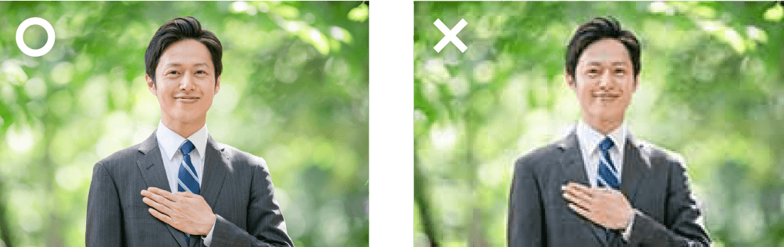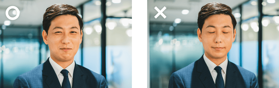 また、半開きもNGになります。特に集合写真のように複数人が写っている写真を使用する際は注意が必要です。