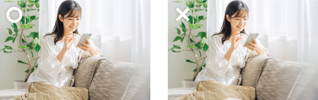 ただ、室内でノイズのない綺麗な写真を撮るにはスマートフォンでは限界があるため、どうしても室内の写真を使用したいという場合は素材サイトで購入するか、プロに頼ることをおススメします。