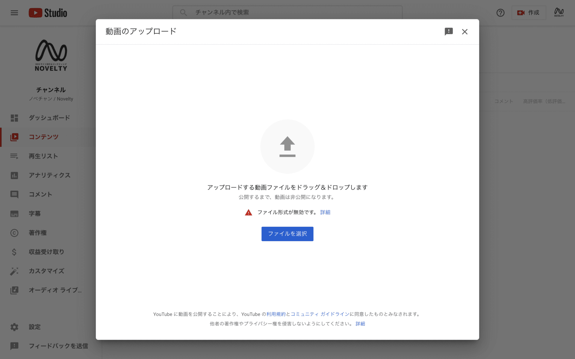 クリック後、画面が切り替わり動画のアップロード画面に進みます。アップロードする動画ファイルをドラッグ&ドロップまたは、ファイルを選択から投稿したい動画をアップロードします。この時、アップロードする動画は必ず60秒以内であることを確認してください。
