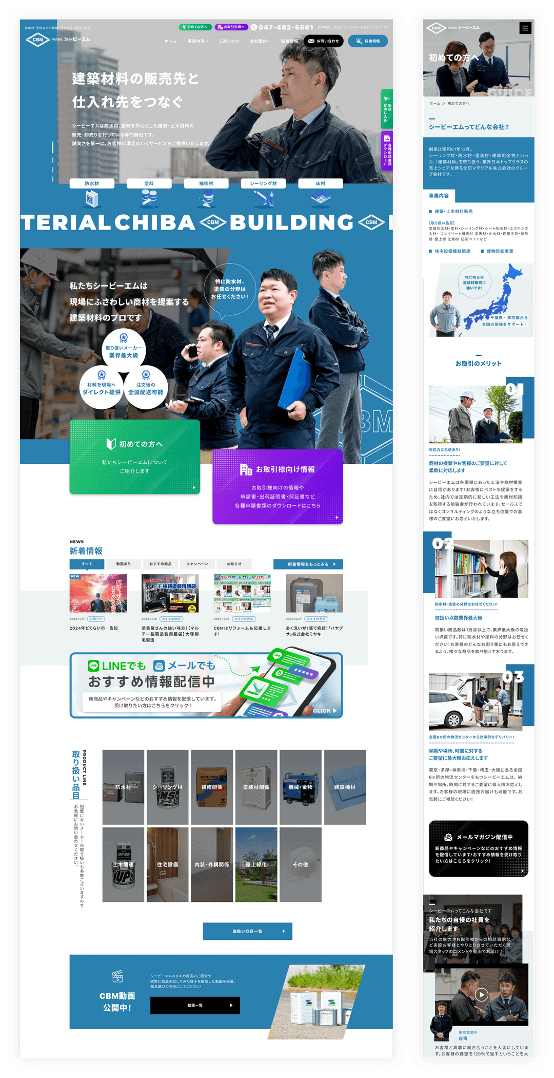 - 会社の目指す将来像を具現化したコーポレートサイトへ進化するべくフルリニューアルをご依頼いただきました。 建築資材の販売商社である株式会社シービーエム様。販売するものは建築資材ですが、会社の考える自社の商品は「人」。 顧客とは長く深いお付き合いになることが多い営業形態で、自社の売りとなる「人」の素晴らしさを全面に伝えられるサイトにするにはどうしたら良いだろうか、そんな相談からリニューアルプロジェクトが始動しました。